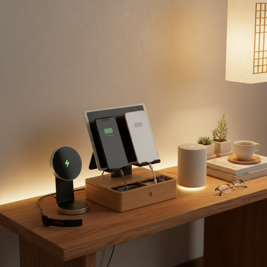가족 도킹 스테이션 한 자리를 정리할 때는 보기 좋게 채우는 것보다 밤 도착 순서대로 모이는 기기 줄이 손에 바로 닿는지가 더 중요했습니다. 이렇게 해야 "아침에 바로 들고 나갈 기기만 앞줄에 남기기" 같은 흐름도 같이 살아납니다.